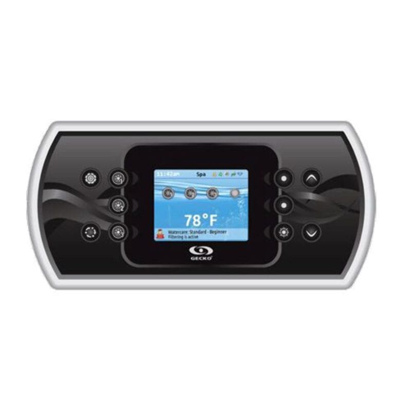 The Gecko Overlay IN.K800 is a high quality and versatile control overlay designed for the Gecko IN.K800 topside control system. Featuring a whopping 10 buttons – Settings, Mode, P1, P2, P3, AUX1, AUX2, Light, Up and Down – this overlay provides comprehensive control over all key functions of your spa, including pump control, lighting and temperature settings.