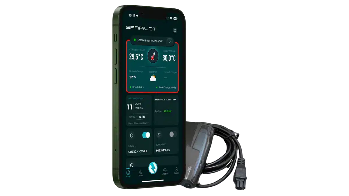 With Spapilot, you can easily adjust the temperature, schedule heating, and monitor your energy costs directly from your smartphone – whether you're at home or away. The Spapilot Wi-Fi solution allows you to switch your heating on and off remotely, giving you maximum flexibility and helping you reduce your energy costs by up to 80%.