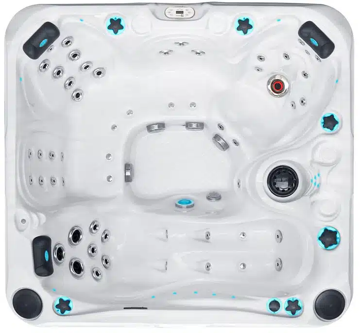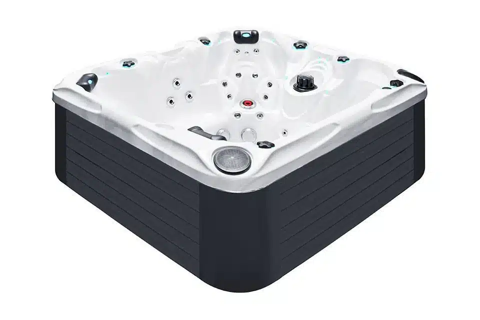 Devine Spas Luxury 5 Person Spa – Powerful Hydrotherapy & Comfort Experience ultimate relaxation with this luxury Devine Spas hot tub, designed for those seeking a combination of comfort, performance, and style. With room for 5 people – 3 comfortable seats and 2 generous loungers – this spa is ideal for both relaxing solo moments and cozy wellness moments with family or friends. The hot tub is equipped with no fewer than 90 powerful hydrotherapy jets, powered by three powerful 3.0 HP massage pumps. This provides an intense, evenly distributed massage that stimulates the entire body. The high-quality Balboa control and heating system guarantees precise temperature control and reliable operation. Combined with the fully automatic filtration system and ozone oxidation system, the water remains clear and hygienic, with minimal maintenance. The maintenance-free cabinet and triple-layered thermal insulation optimally retain heat, resulting in an energy-efficient and long-lasting spa. The luxurious appearance is enhanced by 16 LED lights, StarBrite LED underwater lighting and two illuminated water arches, which together create an atmospheric and relaxing wellness experience. For added comfort, the spa is equipped with a Bluetooth audio system with built-in speakers, so you can enjoy your favorite music while relaxing. Key Benefits: Suitable for 5 people (3 seats and 2 loungers) 90 active hydrotherapy jets for an intense massage Balboa heating and control system (3.0 kW) Three powerful 3.0 HP pumps plus circulation pump Fully automatic filtration system with ozone cleaning Luxury LED lighting and illuminated water fountains Bluetooth audio with built-in speakers Excellent insulation and energy efficiency Maintenance-free and durable construction With its generous dimensions of 220 x 220 x 82 cm and a water capacity of At 1005 liters, this Devine Spas hot tub is a perfect addition to any garden or wellness space. It's the ideal choice for those seeking luxury, power, and reliability in a single, complete spa solution.