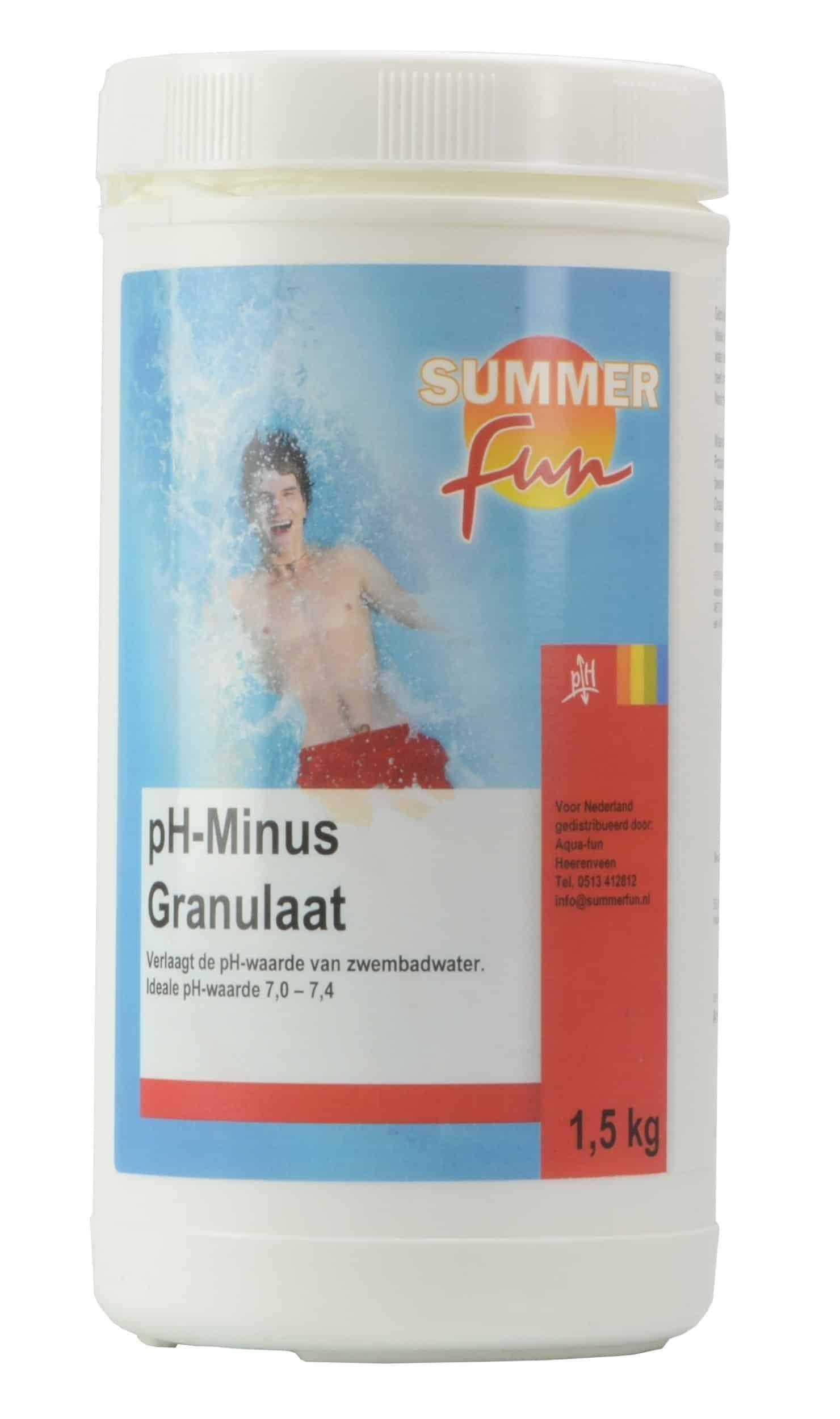 correct pH level is the basis for clean and safe swimming water. If the pH is too high, chlorine products can be less effective, leading to cloudy water, limescale, and algae growth. Summer Fun pH- (1.5 kg) helps you easily lower the pH level and ensures that your pool water remains clear and balanced.